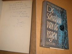De schaduw van de... De schaduw van de regen [GESIGNEERD] Linnengebonden met een licht versleten stofomslag. Voorin het boek zit een handgeschrevenen met Inez ondertekende persoonlijke boodschap aan Ad (den Besten) en Agnes, die Inez hebben gestimuleerd in haar schrijverschap. Gedateerd 23-3-1960 Inez van Dullemen; € 45,00 In winkelwagen