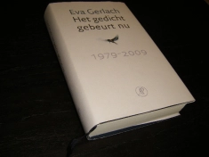 Het gedicht gebeurt... Het gedicht gebeurt nu, 1979-2009 Linnengebonden met omslag. voorin onopvallend exlibris in relief, verder in zeer goede staat Tien jaar geleden verscheen "Voorlopig verblijf. Gedichten 1979-1990" van Eva Gerlach. In die bundel verzamelde zij vijfenzeventig gedichten uit de bundels - de eerste zes - die in de loop der jaren uitverkocht waren geraakt. Dat was een strenge selectie. Gerlach wilde geen verzameld werk, ze wilde opgenomen hebben wat in haar ogen overeind gebleven was. In de jaren daarna werd haar de P.C. Hooftprijs toegekend en verschenen nog tal van bundels, waaronder "Wat zoekraakt", "Alles is werkelijk hier", "Niets bestendiger", "Solstitium", "Een bed van mensenvlees" en "Situaties". Anno 2009 is het de hoogste tijd voor een tweede 'summing up'. "Het gedicht gebeurt nu" is alweer geen totaaloverzicht maar een door Gerlach zelf kieskeurig verzameld werk waarin het beste wat zij volgens zichzelf te bieden heeft, is opgenomen. Eva Gerlach ; € 22,50 In winkelwagen