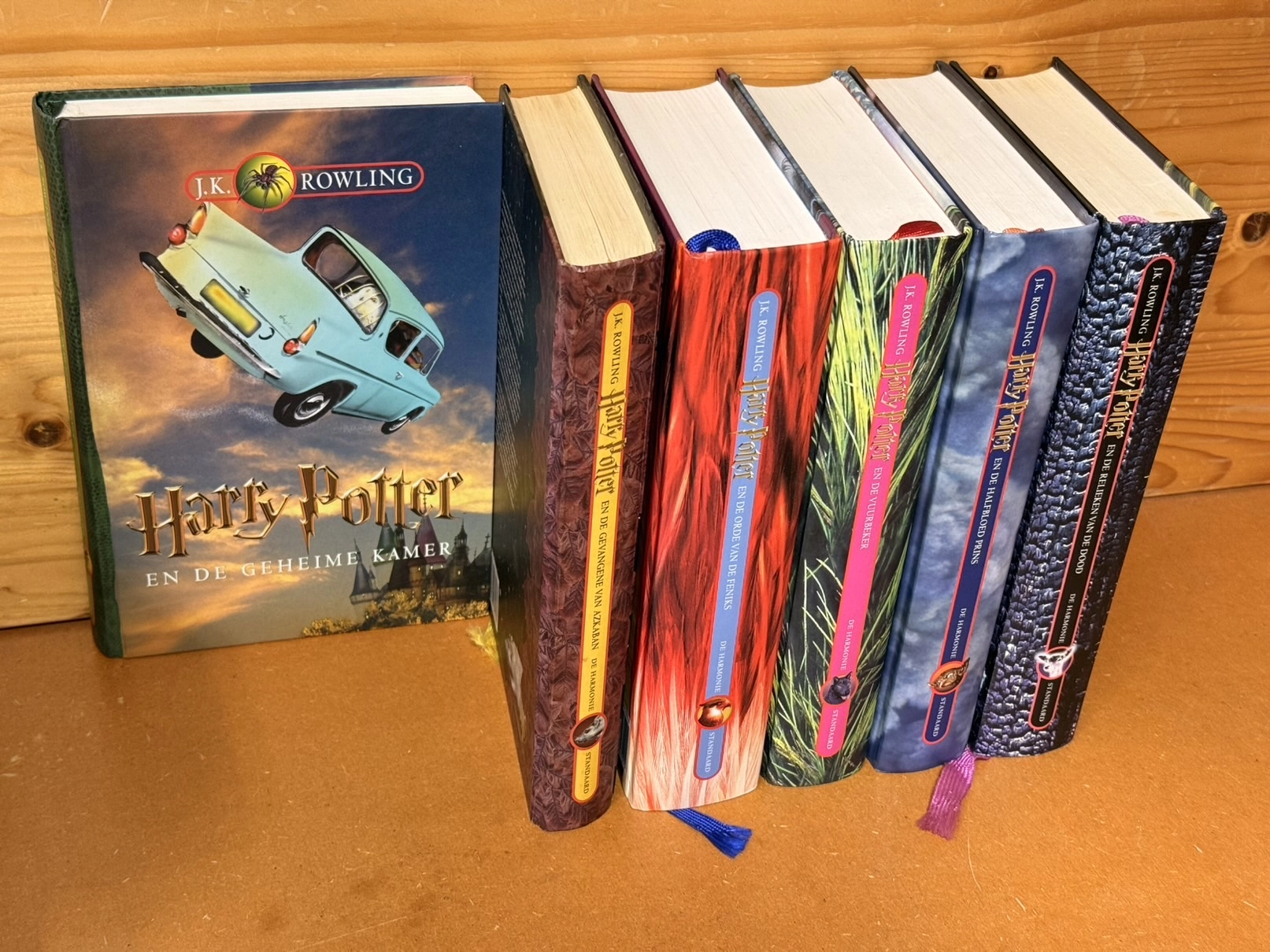 J.K. Rowling; Wiebe Buddingh (vertaling);Op deel 1 na (bijna) complete set in goede (wel iets gebruikte) staat. Azkaban is een 1e druk hardcover NL, maar is niet zo mooi, de rest zijn herdrukken. In De Halfbloed Prins zit een klein naamstickertje, verder geen namen voorin.