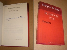 Ik droom dus Ik droom dus Linnengebonden met stofomslag, naam voorin, op dezelfde pagina gesigneerd door de schrijfster, in zeer goede staat Margriet de Moor ; € 8,50 In winkelwagen
